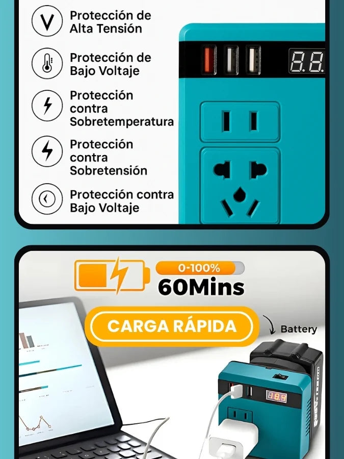 NO MÁS PARADAS POR FALTA DE ENERGÍA, TRABAJA Y CARGA TUS HERRAMIENTAS SIN LÍMITES