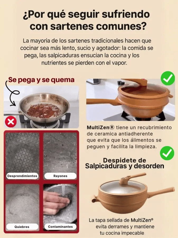 Miles ya disfrutan de la practicidad y seguridad de MultiZen®. Cocinan con menos aceite, sin salpicaduras y con la tranquilidad de tener un sartén que dura años.
