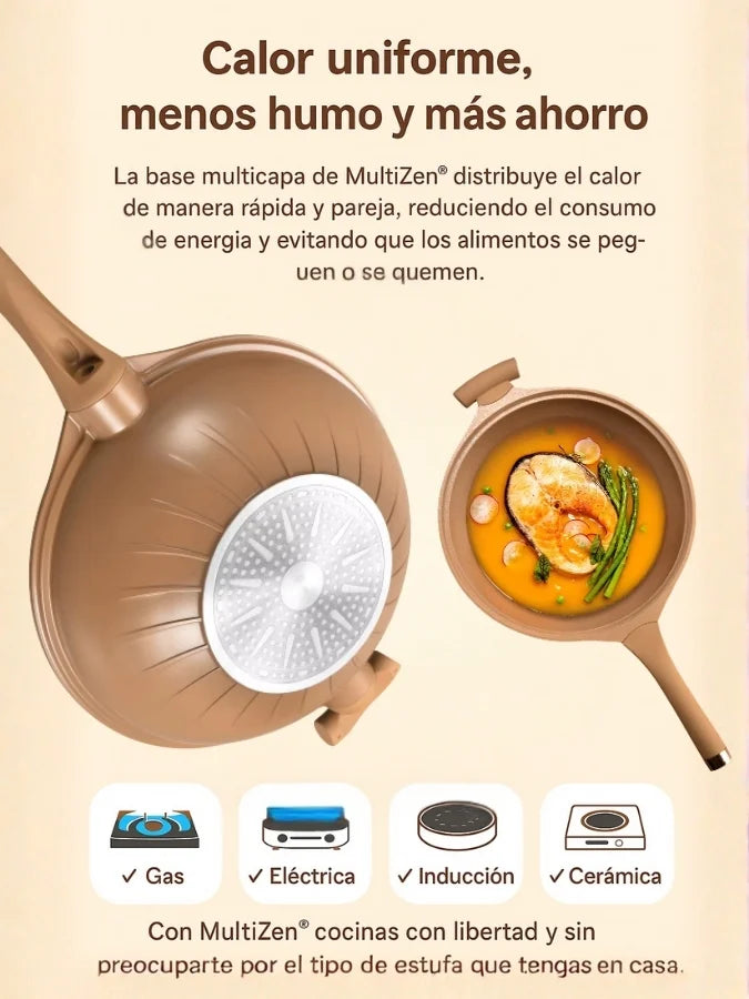 Sí ✅. MultiZen® es compatible con estufas de gas, eléctricas, de inducción y cerámicas.